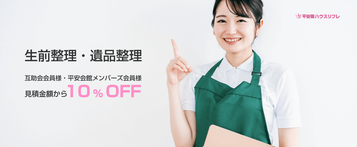 ※ 互助会員様は上記金額より5%OFFとなります(遺品整理・生前整理は10%OFF)